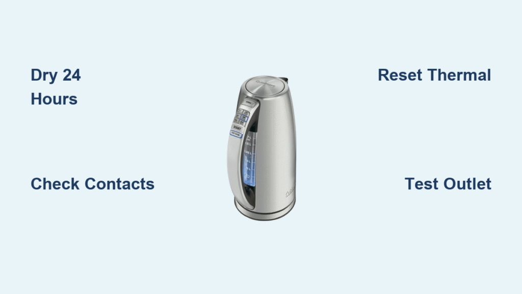 You cleaned your Cuisinart water heater following the manual’s instructions, but now it won’t power on. This sudden failure after