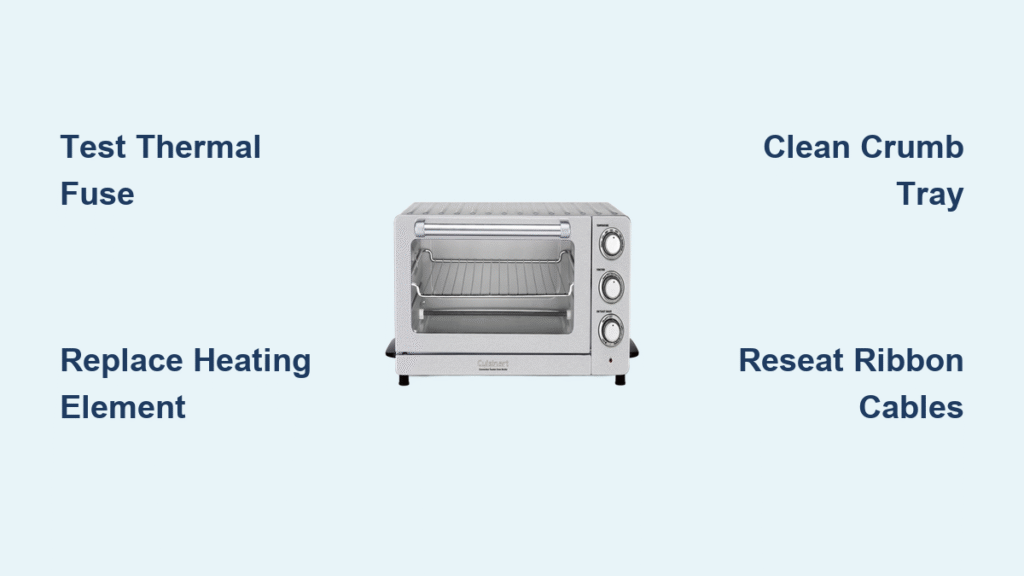 Your Cuisinart toaster oven just died mid-toasting cycle, leaving you staring at cold bread and a $200 replacement quote. Before