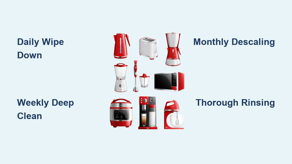 Small kitchen appliances make daily cooking more convenient, but they also collect grease, food residue, mineral deposits, and bacteria with