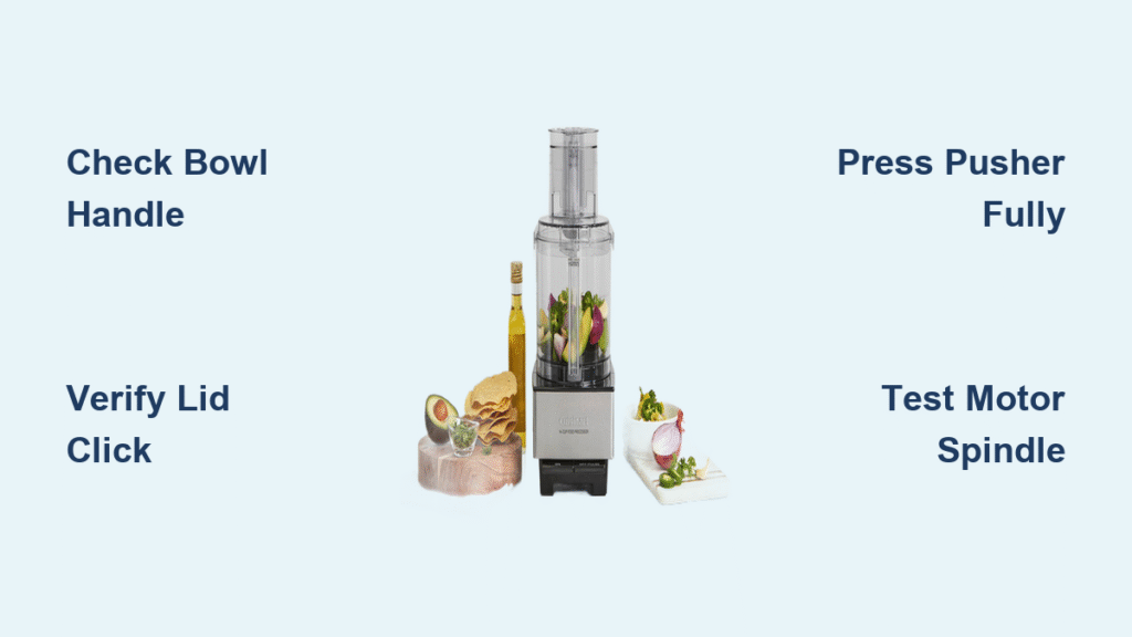 The lid’s feed tube tab starts slightly left of center before requiring a full clockwise twist. You must hear a distinct audible click to confirm engagement—many users stop twisting too early, leaving the processor in permanent lockout mode. Watch for visual cues: the lid should sit flush against the bowl with no visible gaps, and the tab should align precisely with the bowl’s front indicator mark.