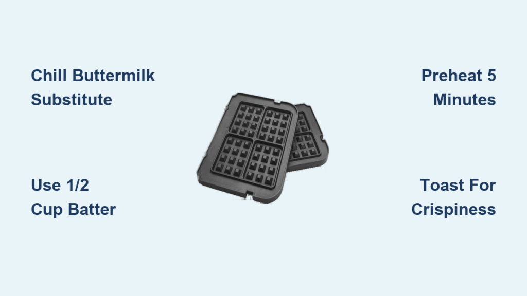 After chilling, whisk canola oil into the buttermilk substitute until emulsified. Create a well in the dry ingredients, pour wet mixture in, and fold with a spatula only until streaks disappear. Lumps are desirable—overmixing develops gluten that makes waffles tough. Let batter rest 7 minutes; this hydration period creates the signature light texture that earned “double thumbs up” from picky eaters.