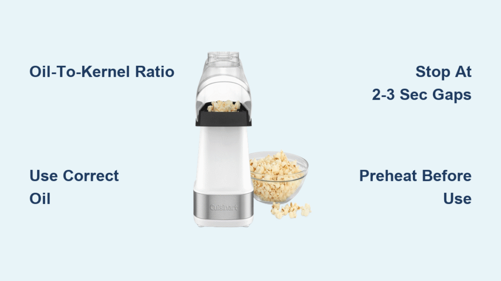 Your Cuisinart’s built-in thermostat and stirring arm handle the hard work, but wrong ratios cause 90% of failures. Too little oil burns kernels; too much drowns your popcorn in grease. These measurements—tested across hundreds of batches—guarantee perfect coverage without waste.