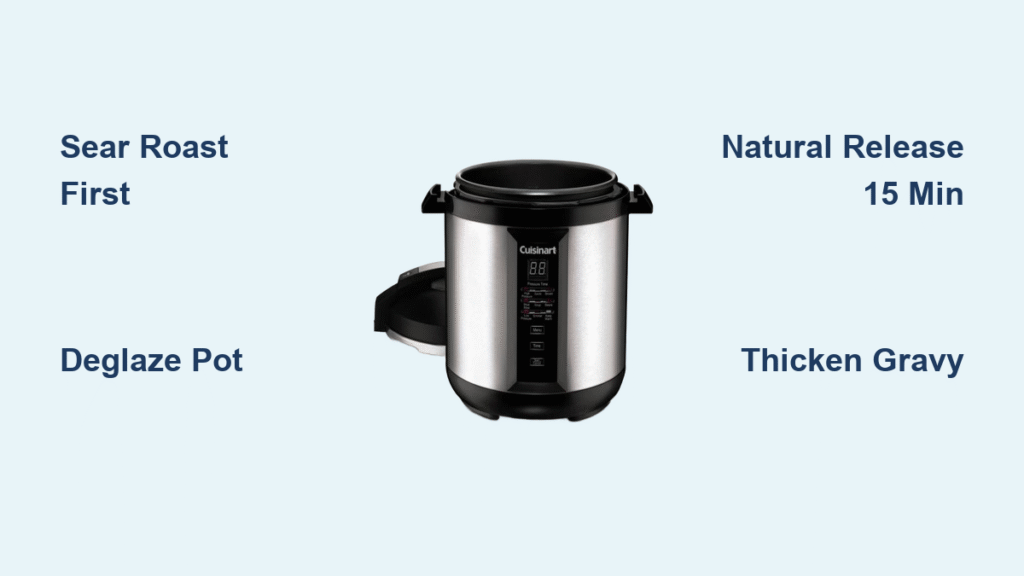 Nothing beats the rich, fork-tender comfort of pot roast—especially when it cooks in under 90 minutes. Your Cuisinart pressure cooker transforms a tough chuck roast into melt-in-your-mouth perfection while infusing every bite with deep, savory flavor. This streamlined guide walks you through the exact steps, timing, and ingredient ratios that guarantee restaurant-quality results every single time. Skip the all-day oven method and discover how this Cuisinart pressure cooker pot roast recipe delivers tender, juicy beef with minimal hands-on time—perfect for busy weeknights when you crave classic comfort food.