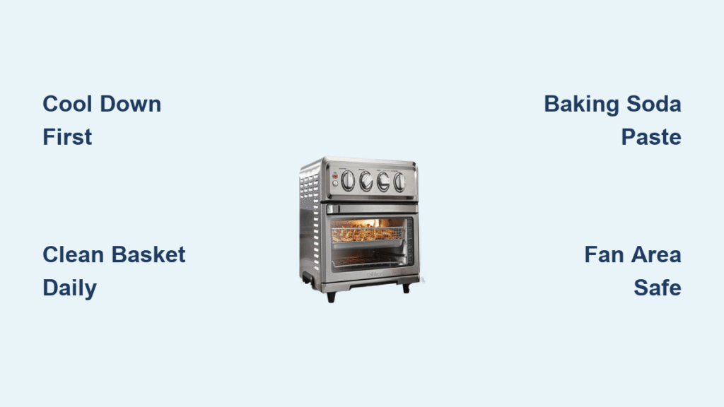 That stubborn smell of last week’s salmon or the greasy film clinging to your Cuisinart air fryer oven’s interior walls? It’s silently sabotaging your crispy fries and even cooking. When food residue builds up around the heating element or fan assembly, airflow chokes—turning “air fry” into “steam cook” and leaving you with soggy results. This guide cuts through the confusion with battle-tested cleaning steps that restore peak performance in under 30 minutes. You’ll learn exactly how to tackle baked-on grease without damaging non-stick coatings and prevent future buildup with simple daily habits.