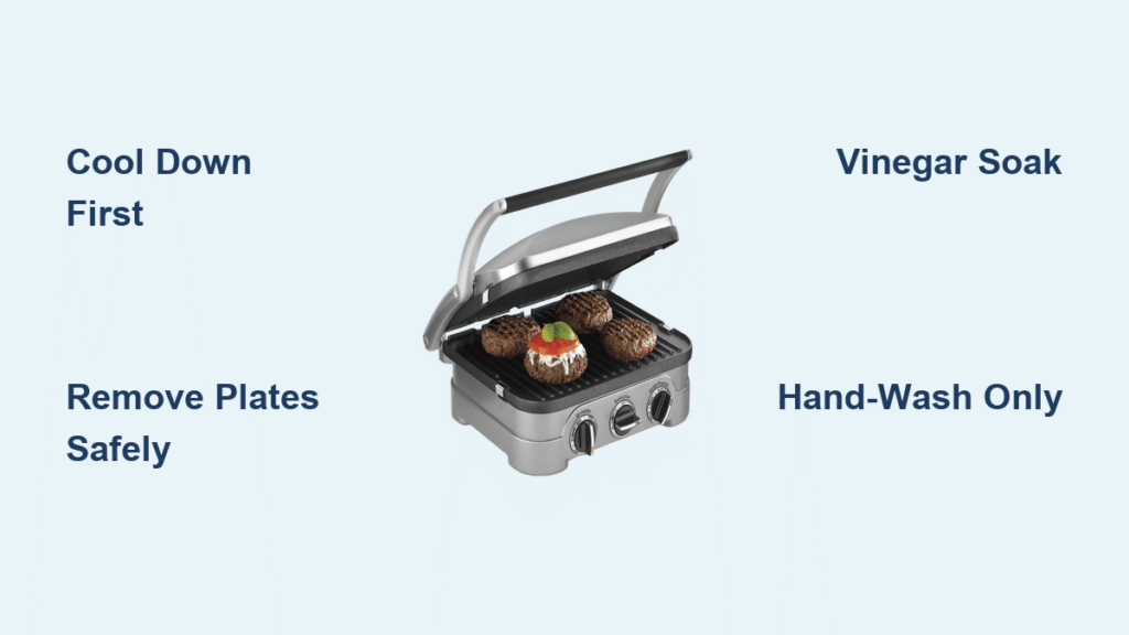 That perfect panini sear leaves behind stubborn cheese crust and grease splatters that threaten to ruin your next meal. When your Cuisinart Griddler plates develop sticky residue or baked-on debris, proper cleaning becomes essential—not just for taste, but to protect your $150 investment. Learning how to clean Cuisinart Griddler plates correctly prevents permanent damage to the non-stick coating while avoiding fire hazards from grease buildup in hard-to-reach areas. This guide delivers field-tested methods from decade-long owners, transforming a dreaded chore into a 15-minute routine that keeps your appliance performing like day one.