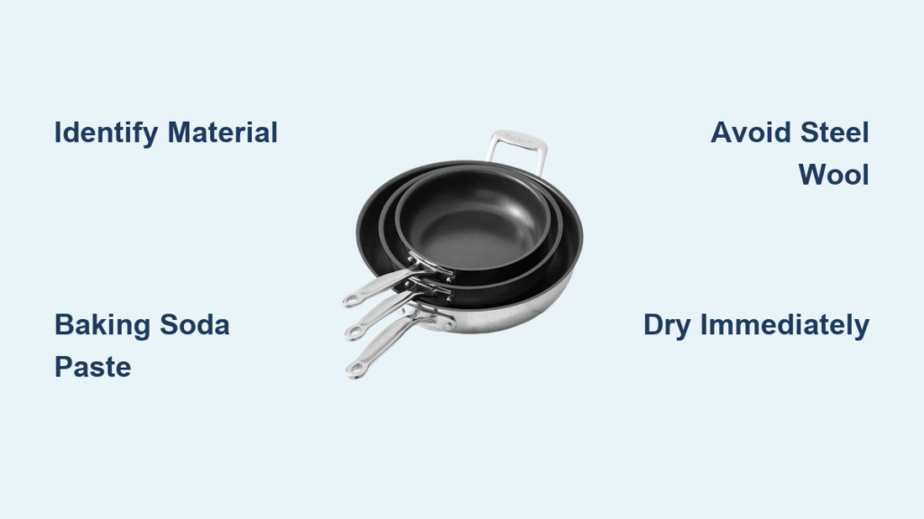 The right approach starts with understanding your specific pan material—each requires distinct care. Jumping straight to abrasive cleaners or soaking overnight often causes irreversible etching, pitting, or coating failure. This guide delivers field-tested methods verified by culinary experts, with clear warnings about what never to do. By the end, you’ll have a complete action plan to restore shine and prevent future damage.