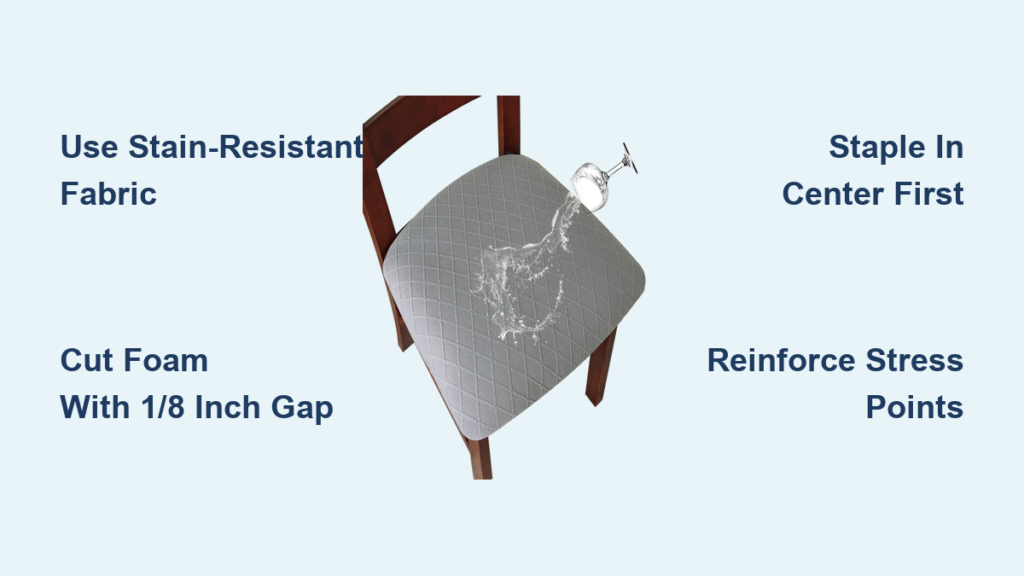 Final Note: Properly covered kitchen chair seats should last 3-5 years with regular use—significantly longer than quick fixes that skip proper foam selection or tensioning techniques. The key to professional results lies in precise measurements, appropriate materials for kitchen conditions, and methodical tensioning during installation. By following these specific techniques, you’ll transform worn chairs into durable, attractive seating that withstands daily kitchen demands. For your next project, consider adding non-slip pads to chair legs to prevent floor scratches—a simple upgrade that protects both your floors and your newly upholstered seats.