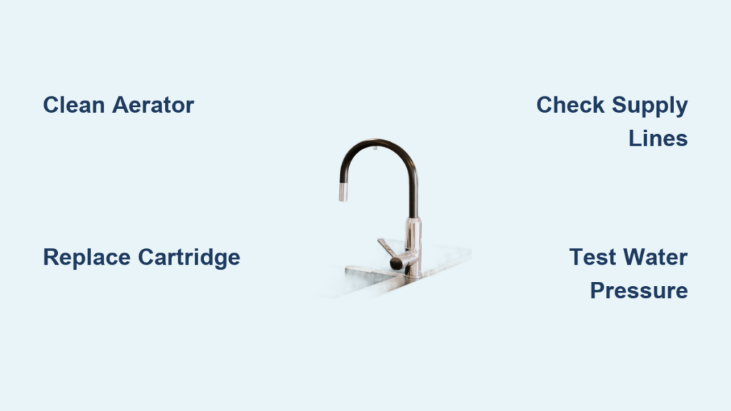That frustrating trickle instead of a strong stream when you turn on your kitchen faucet disrupts meal prep, dishwashing, and every other kitchen task. Slow water flow in kitchen faucet problems plague homes nationwide, transforming simple chores into time-consuming ordeals. Whether your faucet has gradually weakened over months or suddenly lost pressure, most flow issues can be diagnosed and fixed without professional help. This guide reveals exactly how to fix slow water flow in kitchen faucet systems, from quick aerator cleanings to cartridge replacements—all with basic tools you likely already own.