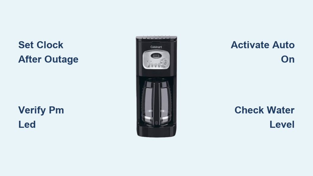 Key Takeaway: Master these three non-negotiable steps tonight—verify the PM LED, activate AUTO ON, and reset after power outages—and your Cuisinart 1100BK will deliver perfect coffee while you sleep. Skip any one, and you’ll face cold water at 6 AM. Set your clock now, run the pre-brew checklist, and tomorrow’s first sip will be worth the 90-second investment. For persistent issues, consult the water sensor cleaning guide—programmed brewing depends on flawless hardware function.
