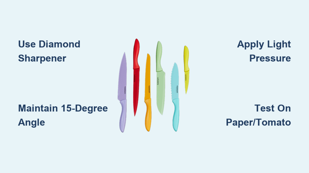 Your Cuisinart ceramic knife announces dullness gradually—it won’t suddenly become useless like steel blades. If it still slices paper cleanly but struggles with tomatoes, try 2-3 light passes before declaring it “dull.” Remember: ceramic sharpening is about realigning the edge, not removing material. The moment you feel resistance during sharpening, you’ve crossed into damaging territory. With this precise technique, your knife will deliver surgical cuts for years—proving that sometimes, the gentlest touch creates the sharpest edge. Keep your diamond sharpener within arm’s reach, but reach for it only when absolutely necessary. That restraint transforms a fragile ceramic blade into your most enduring kitchen ally.