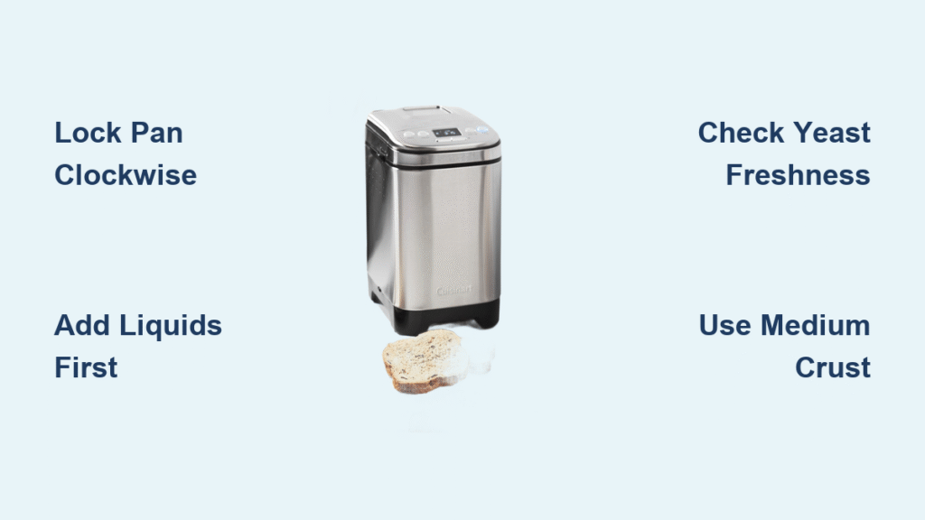 Confirm the kneading paddle clicks firmly onto the shaft. Verify the pan locks clockwise with zero wiggle room. Check yeast expiration dates—expired yeast causes dense, yeasty-smelling bricks. Measure ingredients using only provided tools.
