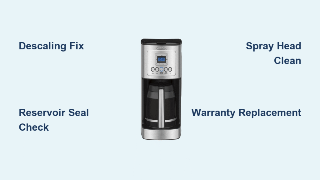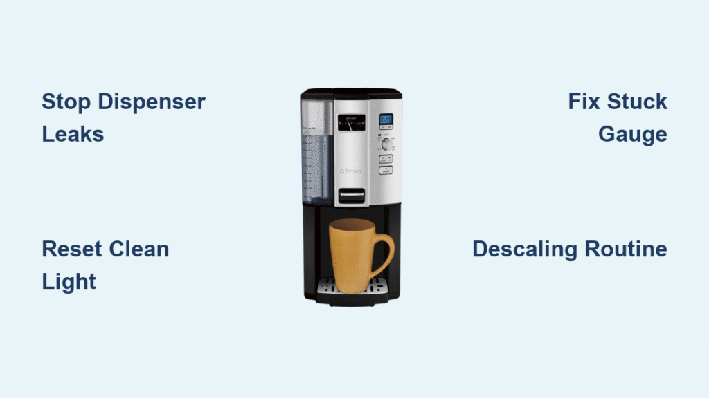 Your Cuisinart DCC-3000 coffee maker suddenly leaks coffee across your countertop during brewing, or that persistent red clean light refuses